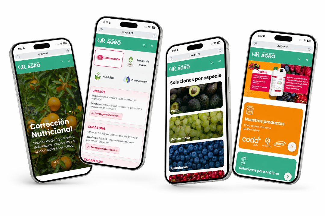 QR Agro is the exclusive representative in Chile for CODA sustainable bio-inputs, from the Spanish company SAS, and for Kryoss anti-freeze protectors. With 7 years of experience in regenerative agriculture, founder Mathias Quiroz had a strong commercial network but no digital presence.